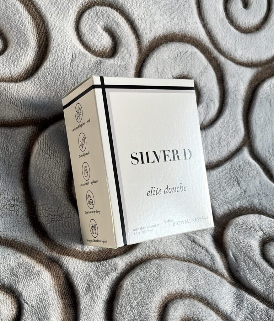 The Silver Balance Elite Feminine Cleanser is their simple, all-natural intimate care solution comprised of colloidal silver, tea tree oil, and water (only 3 ingredients!).
