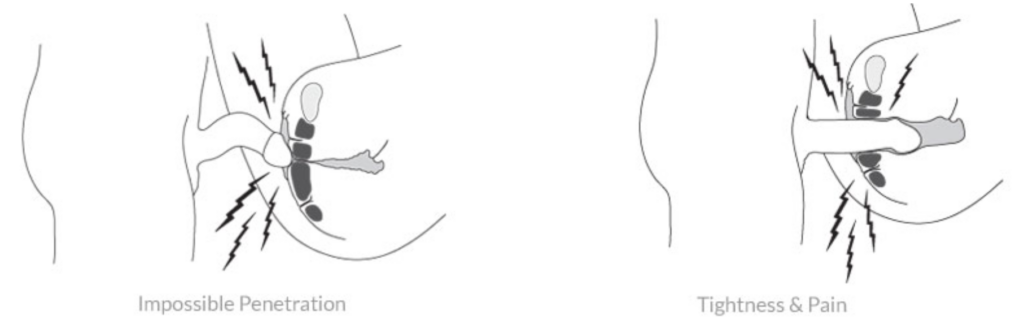 You experience painful sex as a result, where entry may be more difficult or impossible depending upon the severity of this tightened state.